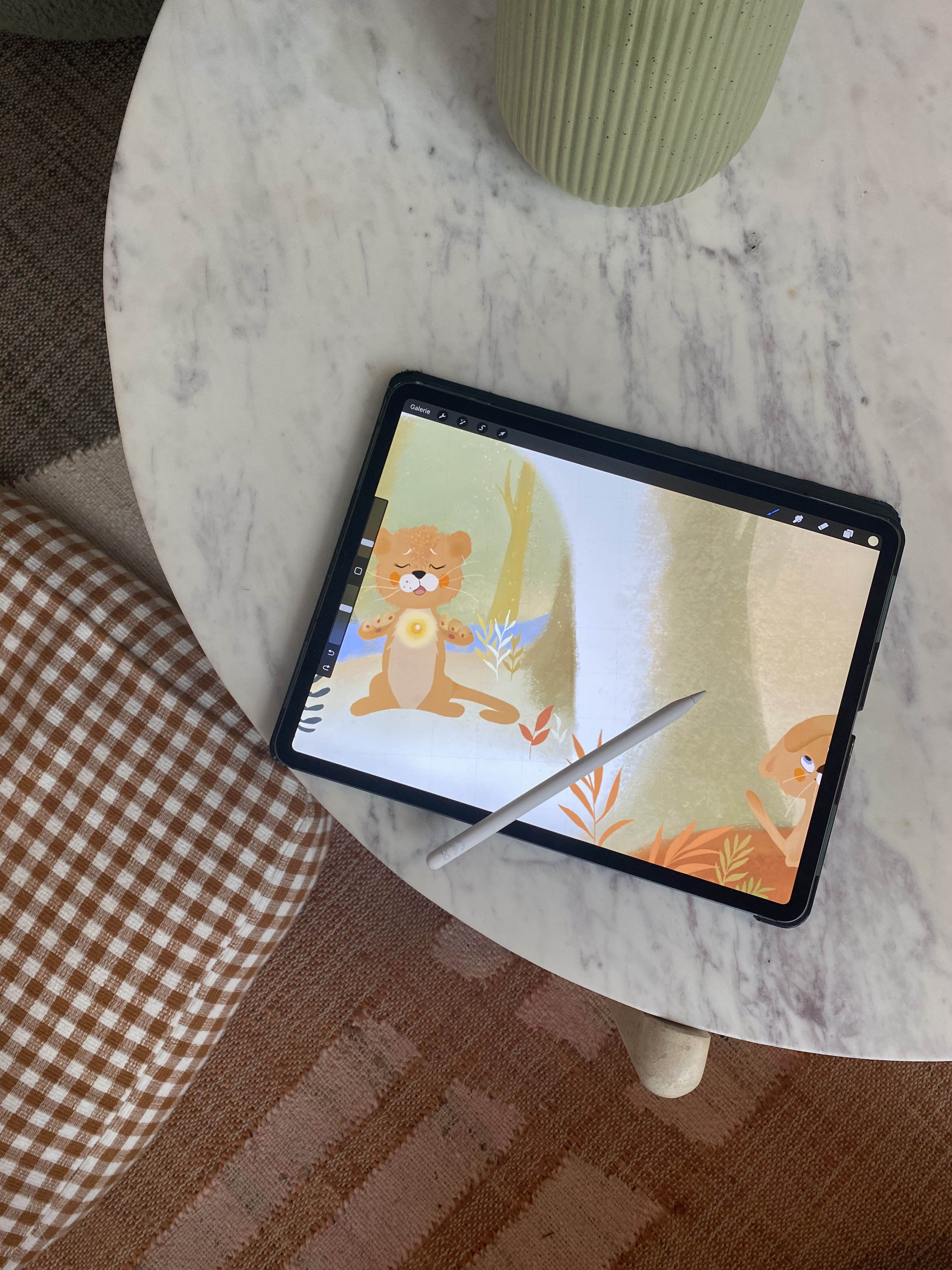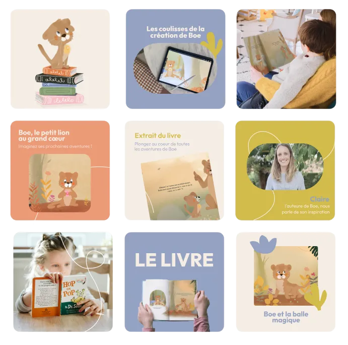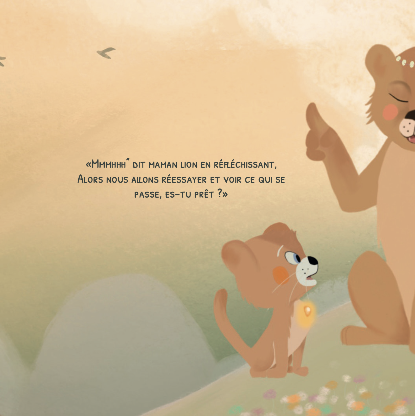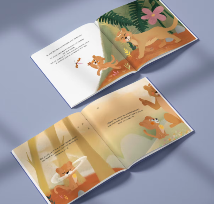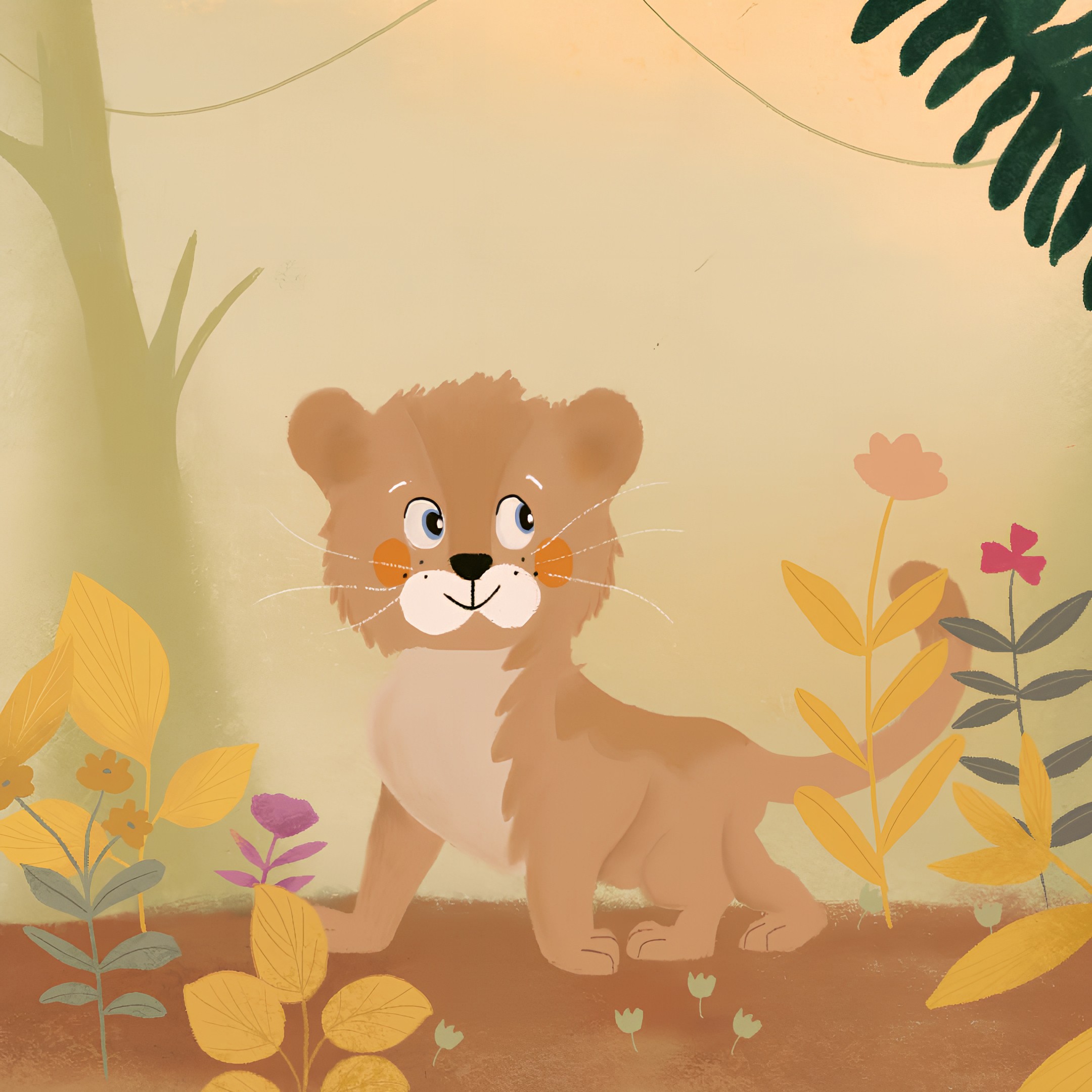 Illustration pour BOE le lion, un livre jeunesse pensé spécialement pour les enfants autistes. Conçu pour les apaiser et les aider à gérer leurs émotions, ce projet mêle douceur graphique et intention pédagogique.