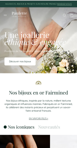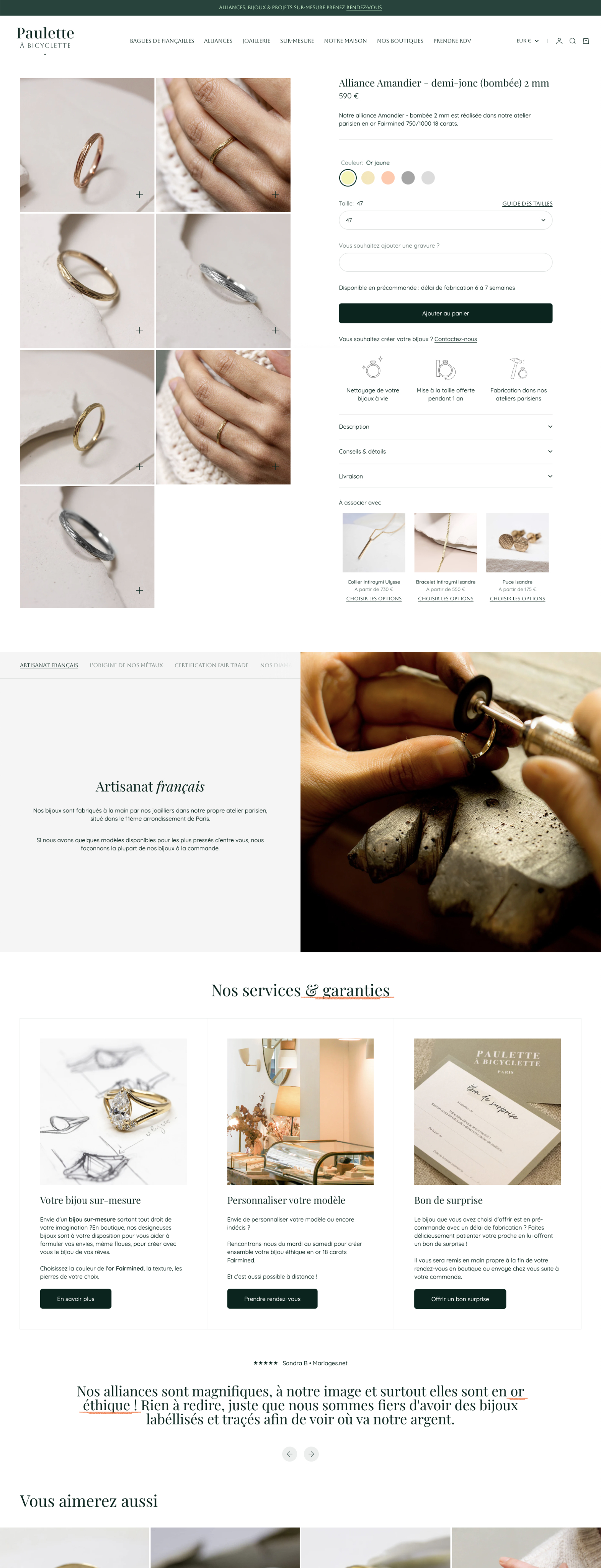 Accompagnement 360 de la marque de bijoux Paulette à Bicyclette dans la refonte de leur site e-commerce sur shopify ainsi que dans leur rebranding en refondant le logo et la charte graphique.