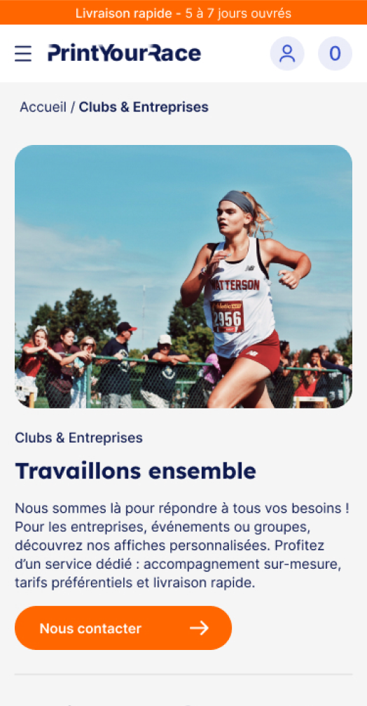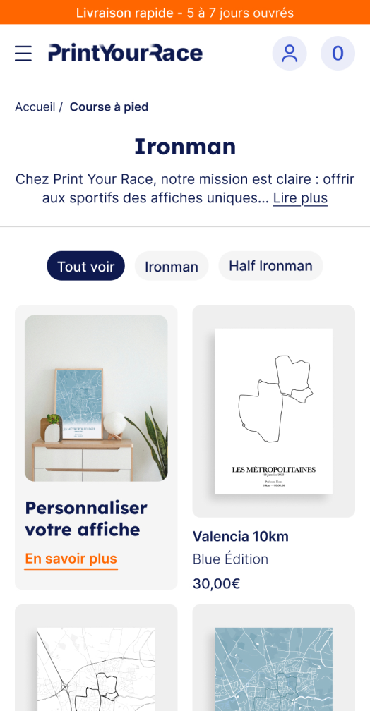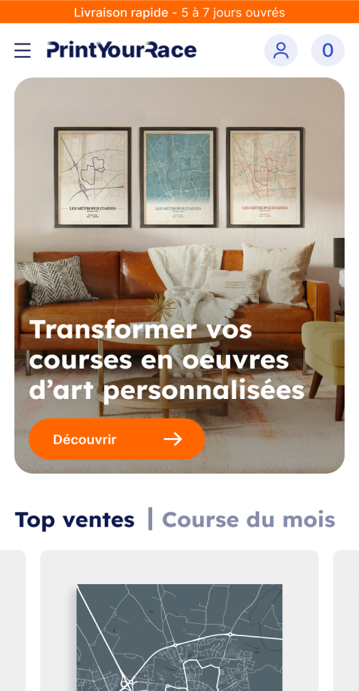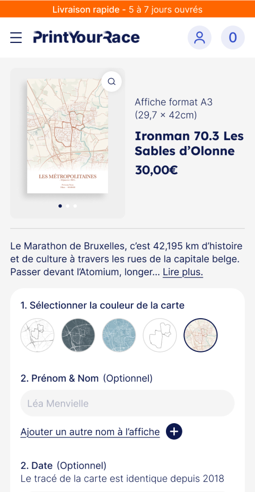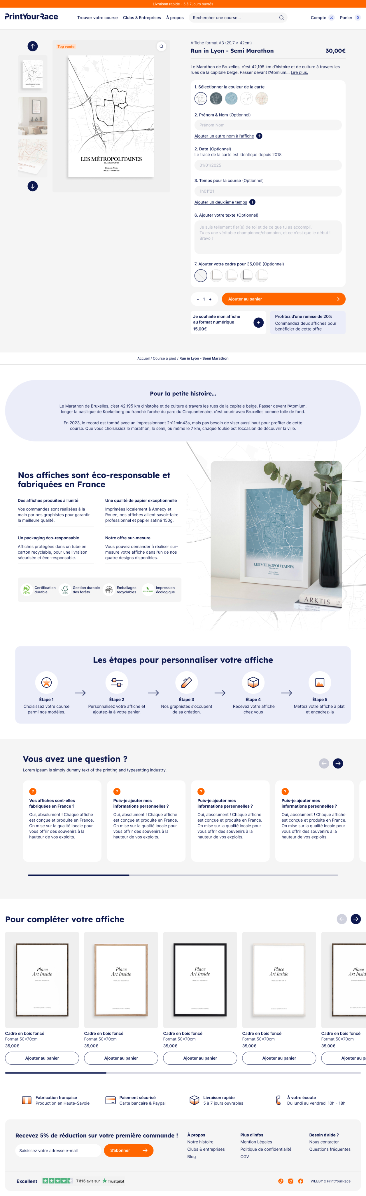 Accompagnement de la marque de Print your race dans sa refonte digitale, pour faciliter la personnalisation des affiches, améliorer le parcours d’achat et la validation des BAT automatisée.